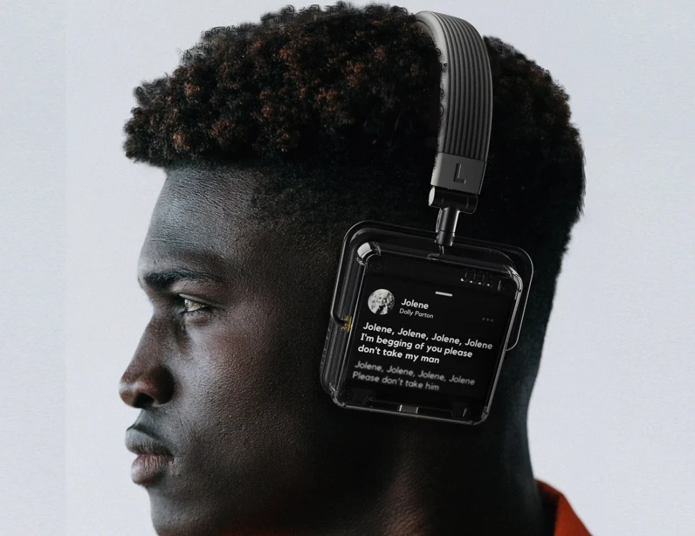 Автором необычного концепта стала дизайнер Ольга Орель (Olga Orel). Квадратная форма накладных чашек позаимствована у классических наушников 1970-х, а размещенные на них дисплеи предназначены для визуализации воспроизводимых треков – их названия, анимации, клипов, плейлистов и т.д., а также заряда встроенного аккумулятора.