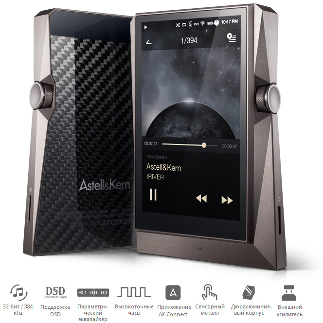 Прямое воспроизведение цифрового контента с кодированием до 32 бит / 384 кГц, поддержка DSD-файлов с частотой до 5,6 МГц, точнейший 20-полосный параметрический эквалайзер – всё это новый революционный Hi-Fi плеер Astell&Kern AK380!