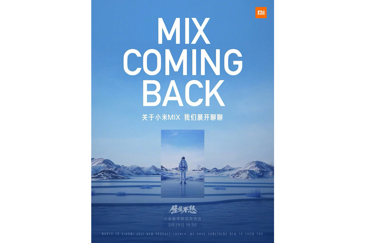 Компания Xiaomi объявила о презентации своего новейшего смартфона Mi Mix 29 марта 2021 года. Слухи о модели намекают, что устройство получит гибкий дисплей, и станет, таким образом, первым изгибаемым мобильным телефоном фирмы.
