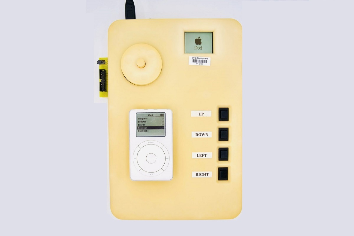На корпусе можно разглядеть очень маленький по сравнению с размерам устройства дисплей, несколько кнопок и колесо управления. Прототип оснащен разъемами, доступными в первом iPod, включая FireWire, а также стандартный порт для подключения наушников.