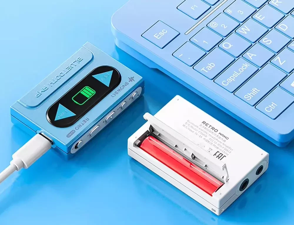 SnowSky разработал этот сверхкомпактный портативный Bluetooth ЦАП/усилитель для наушников с компонентами передового уровня, включая новейший чипсет Qualcomm Bluetooth, архитектуру двойного ЦАП, мощную секцию усилителя и т. д. Здесь есть 0,96-дюймовый экран, который имитирует воспроизведение кассеты, а также отображает различную полезную информацию. Retro Nano оснащён заменяемой пользователем батареей, так что музыка не остановится ни на секунду! Портативный Bluetooth DAC имеет перезаряжаемую литиевую батарею 3,7 В, позволяющую гаджету работать в течение 7,5 часов на одной зарядке. В режиме USB-ЦАП Retro Nano получает питание от внешнего источника, потому может работать даже без батареи.