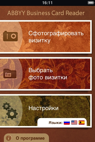 ABBYY Business Card Reader 3.0 для iPhone считывает всю необходимую информацию с визитных карточек и автоматически сохраняет ее в адресной книге телефона, позволяя не только мгновенно создавать новые контакты, но и обновлять уже существующие. С помощью встроенной камеры iPhone и уникальной технологии распознавания текста от ABBYY приложение определяет имя, телефонные номера, e-mail и другую контактную информацию и сохраняет ее в карточку контакта в соответствующих полях. ABBYY Business Card Reader распознает текст на 17 языках и умеет обрабатывать многоязычные визитки. ABBYY Business Card Reader 3.0 для iPhone позволяет быстро и не выходя из приложения находить информацию о компании или человеке в социальных сетях, таких как Twitter, LinkedIn и Facebook, а также в деловой базе данных Hoover’s. Таким образом, пользователь всегда может получить важную дополнительную информацию о контакте, которой нет на визитной карточке, а в случае необходимости быстро найти распознанный адрес на Google Maps, не сохраняя его в адресной книге. С выходом версии 3.0 работать с приложением стало еще проще. Теперь неуверенно распознанные символы выделяются цветом, и пользователю не нужно перечитывать все данные, чтобы проверить их правильность. Кроме того, программа имеет новый интуитивно понятный интерфейс.