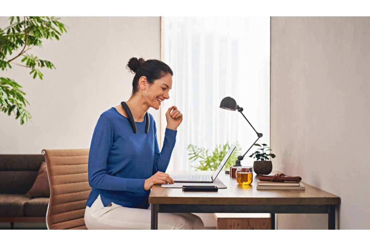 Компания Sony пополнила ассортимент своей продукции колонкой на шею SRS-NB10. Она имеет изящную форму и поступит на рынок в двух цветах: темно-сером и светло-сером. Новинка получила эргономичный дизайн, а её размеры намного компактнее, чем у конкурентов. Расположение динамиков обеспечивает отчетливый звук даже с минимальным уровнем громкости, который не мешает окружающим.