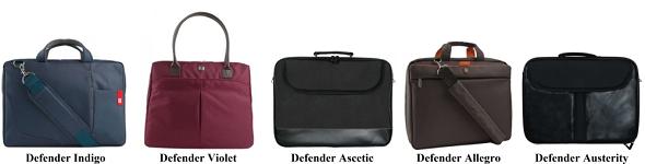 представила пять специальных сумок. Модели Defender Indigo и Defender Allegro оснащены удобным отстегивающимся наплечным ремнем, длину которого несложно отрегулировать по своему усмотрению. Новинки имеют просторное усиленное отделение для лептопа с противоударными стенками и фиксирующим ремешком, надежно защищающее технику от повреждений при падении. Дополнительные отделения и карманы предназначены для документов и различных мелочей. Defender Indigo выполнена в синем цвете, Defender Allegro – в коричневом с ярко-оранжевыми вставками. Defender Violet – элегантная женская сумка фиолетового цвета с тонкими и изящными коричневыми ручками. В ней предусмотрено просторное отделение для ноутбука с противоударными стенками и фиксирующим ремешком, а также отделение для документов, органайзер для ручек, визиток, мобильных устройств плюс передний и задний карманы. Портфели Defender Ascetic и Defender Austerity выполнены в строгом деловом стиле и предназначены для людей, вынужденных ездить в длительные деловые поездки. Аксессуары, изготовленные из нейлона (Defender Ascetic) и материала под кожу черного цвета (Defender Austerity), имеют жесткий каркас, уплотненные стенки и регулируемый плечевой ремень. Внешний фронтальный карман на липучке здесь предназначен для брошюр, тонких папок и рабочих материалов. На задней стенке у обеих моделей расположен ремень для крепления на ручке чемодана.