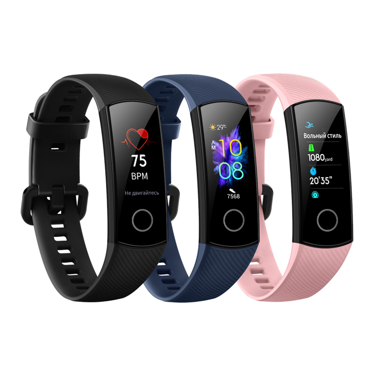 Умный браслет HONOR Band 5 доступен в трех цветах: чёрный метеорит, полночный синий и коралловый розовый. Новый фитнес-трекер появится в продаже с 16 августа в официальном интернет магазине и в магазинах партнеров по рекомендованной розничной цене 2 990 рублей.