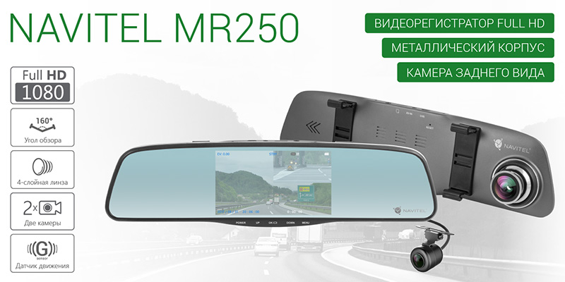 Компания NAVITEL® объявляет о начале продаж smart-зеркала Navitel MR250 c функцией видеорегистратора и дополнительной камерой заднего вида. Устройство имеет прочный металлический корпус и надежно крепится в автомобиль на штатное зеркало заднего вида. На MR250 установлена фронтальная Full HD камера со стеклянной линзой и широким углом обзора. При движении задним ходом важная информация с дополнительной камеры выводится на 5-дюймовый IPS-дисплей, помогая водителю получить полную картину происходящего позади автомобиля.