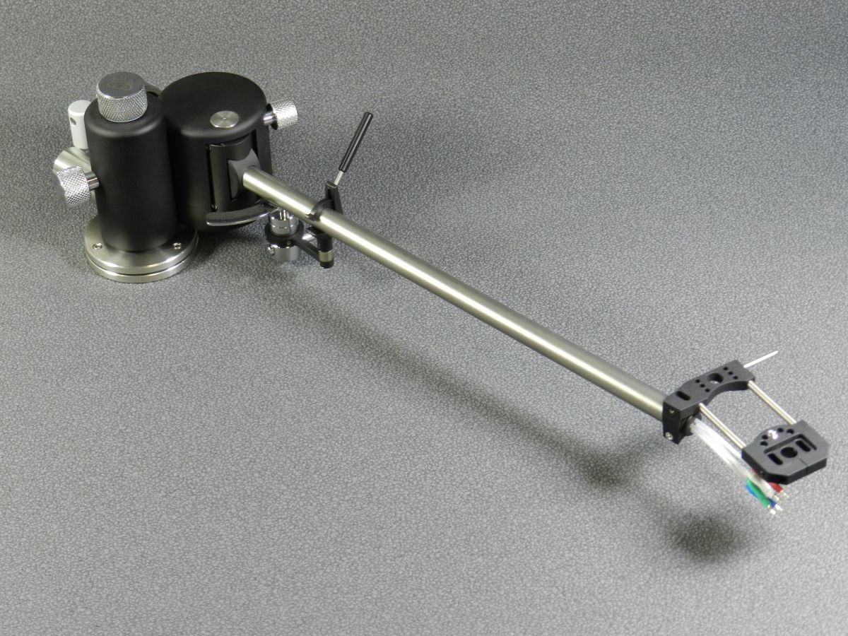 Трубка тонарма выполнена из титана и карбона, эффективная длина модели составляет 10 дюймов. Конструкцией предусмотрена возможность настройки угла захода, вертикального угла следования, азимута, а также свеса. При этом вертикальный угол следования (VTA) можно менять, не прерывая воспроизведения. Еще одна уникальная функция – регулировка плоскости горизонтального подшипника независимо от положения армборда. В комплекте к тонарму идет фирменный трехмерный шаблон.