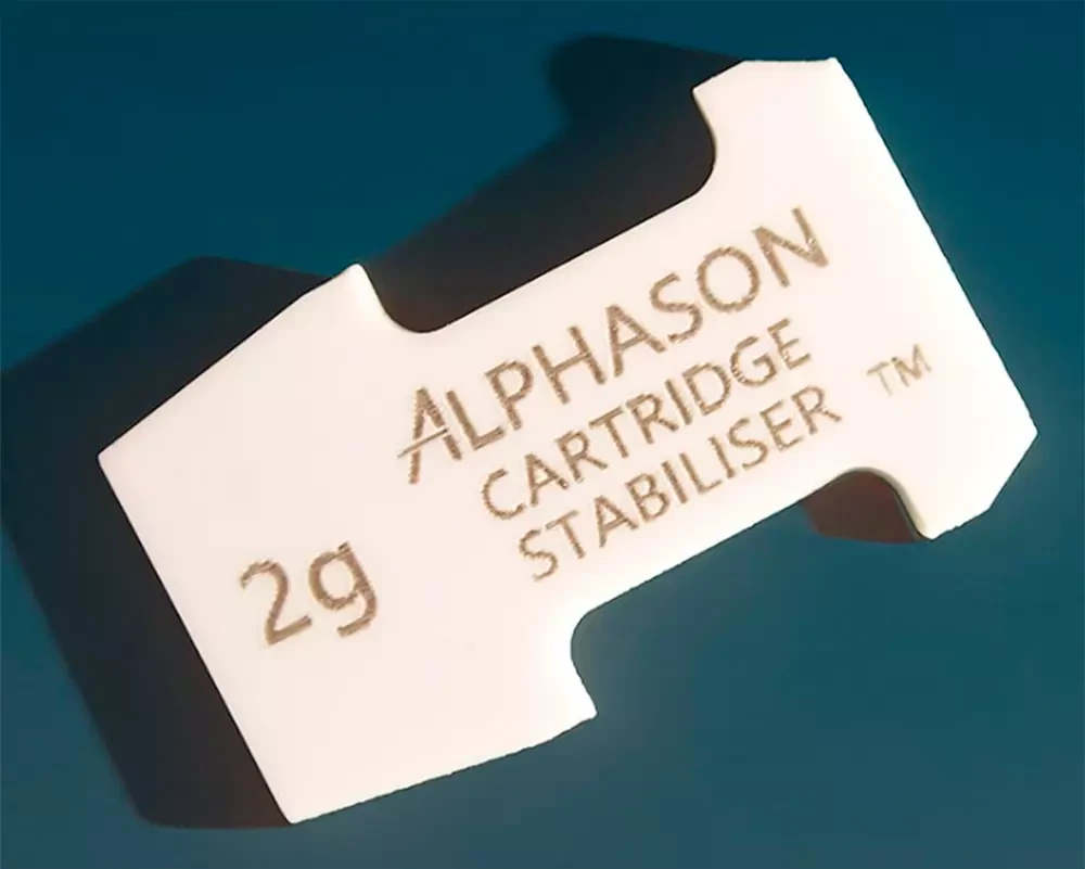 Производитель утверждает, что Alphason Cartridge Stabiliser стоимостью от 32,5 фунтов стерлингов (за модификацию весом 2 г) обеспечивает значительное снижение искажений при воспроизведении грампластинок. В Alphason подчёркивают, что применение высокостабильной платформы для картриджа компенсирует нежелательную вибрацию в корпусе головки и шелле. Стабилизатор картриджа Alphason Cartridge Stabiliser совместим с большинством головок звукоснимателя, шеллов и тонармов. Стабилизатор головки звукоснимателя предлагается разного веса: 2 г (£32,5), 8 г (£79,17) и 12 г (£120,83), что позволяет подобрать аксессуар в зависимости от параметров системы тонарм – головка.