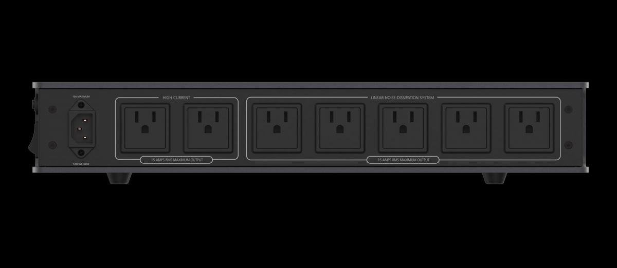 7 розеток: 2 с высокими токами; 5 с линейной фильтрацией шумов