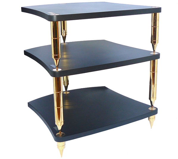 Не так давно итальянская компания Bassocontinuo начала производство модульной стойки для AV-техники Lyra с золотистыми ножками из латуни. Новое цветовое оформление оказалось настолько выигрышным, что было решено распространить его и на более престижную модель линейки Reference под названием Accordeon. Только в данном случае речь идет уже не о латуни: вместо стали опоры с интегрированными элементами для демпфирования вибраций, которыми оснащается Accordeon