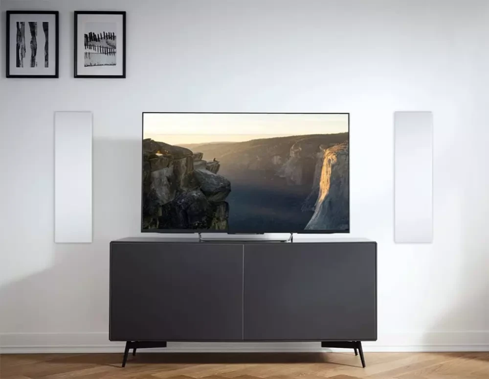 Версия OnWall впечатляет сатинированной матовой отделкой, глубокими чёрными диффузорами и съёмными защитными грилями с магнитными креплениями, заподлицо соединёнными с рамкой. Интегрированное настенное крепление и совместимость с VESA упрощают установку и обеспечивают гибкую ориентацию.