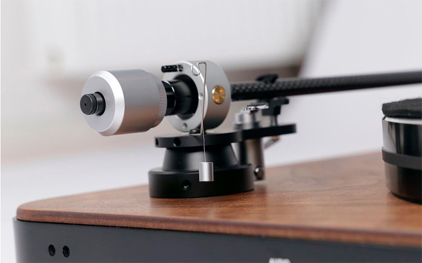 Вертушка оснащается карбоновым тонармом на карданном подвесе длиной 10 дюймов. В качестве опции предлагается головка звукоснимателя с подвижной катушкой (MM) Elac D96 – результат сотрудничества с другой немецкой компанией – Clearaudio, а также пылезащитная пластиковая крышка.