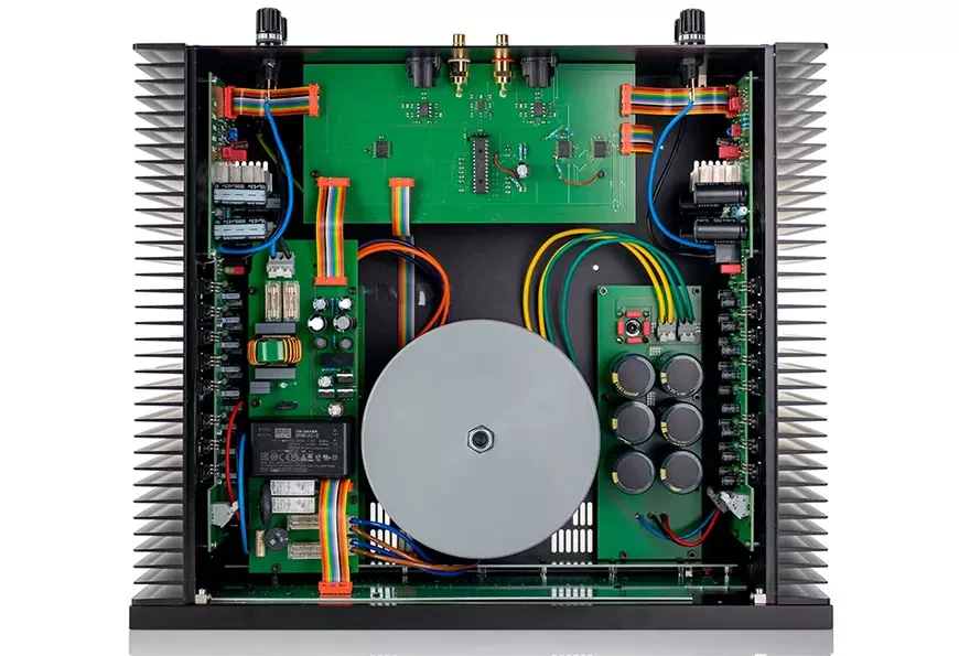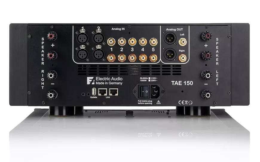 Блок питания усилителя базируется на крупном тороидальном трансформаторе мощностью 1 000 ВА и батарее конденсаторов общей ёмкостью 80 000 мкФ, что позволяет, по словам производителя, выдавать пиковый ток до 70 ампер. Интегральный усилитель Electric Audio TAE 150 оснащён исключительно аналоговыми входами.