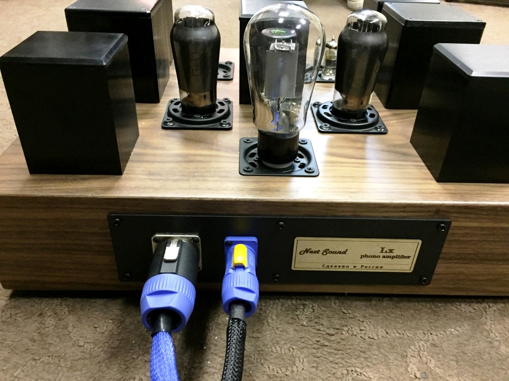 Выходной трансформатор с высококачественным сердечником намотан отобранным по звучанию заказным проводом. Выпрямитель внешнего блока питания реализован на кенотроне. В базовой версии устройства выходном каскаде работает EL84; возможна установка других ламп. Все моточные компоненты Phono Lx изготовлены специалистами Next Sound.