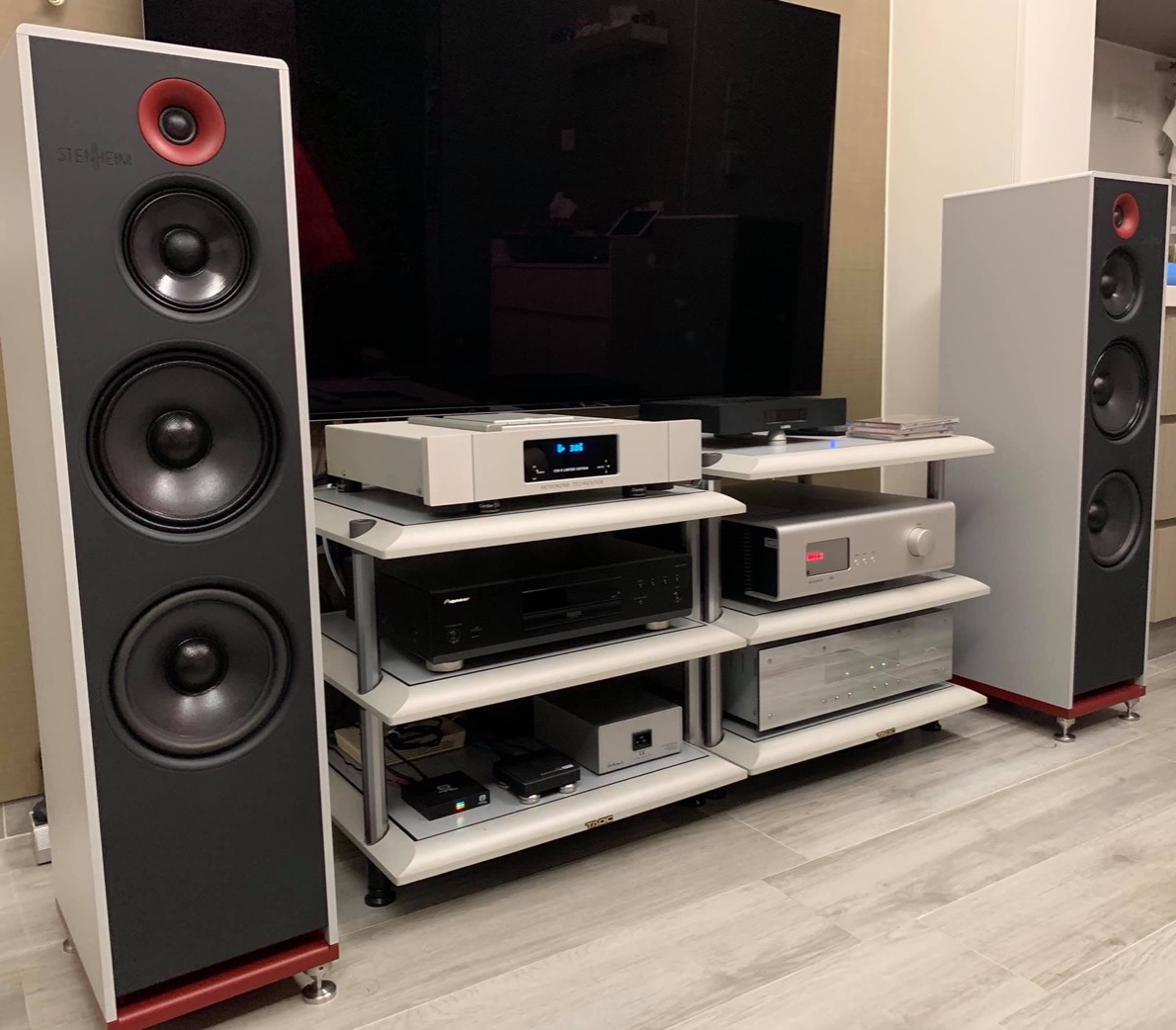Stenheim Alumine THREE (3,2 млн. руб.) - одни из наиболее элегантных напольных спикеров не слишком больших размеров. Предлагаем вам изучить фотогалерею полной системы на базе этих громкоговорителей.