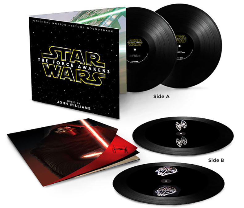 Саундтрек Джона Уильямса из последней части «Звездных войн» — «Force Awakens» («Пробуждение силы») — выйдет в виде альбома из двух 180-граммовых DMM-грампластинок с голографическими 3D-изображениями Тысячелетнего сокола (Millennium Falcon) и Звездного истребителя (TIE Fighter), нанесенными вручную на сторонах "B" обоих дисков Тристаном Дюком из Infinity Light Science. Увидеть изображения можно, посмотрев на пластинки под определенным углом и при соответствующем освещении, например, фонарика смартфона.