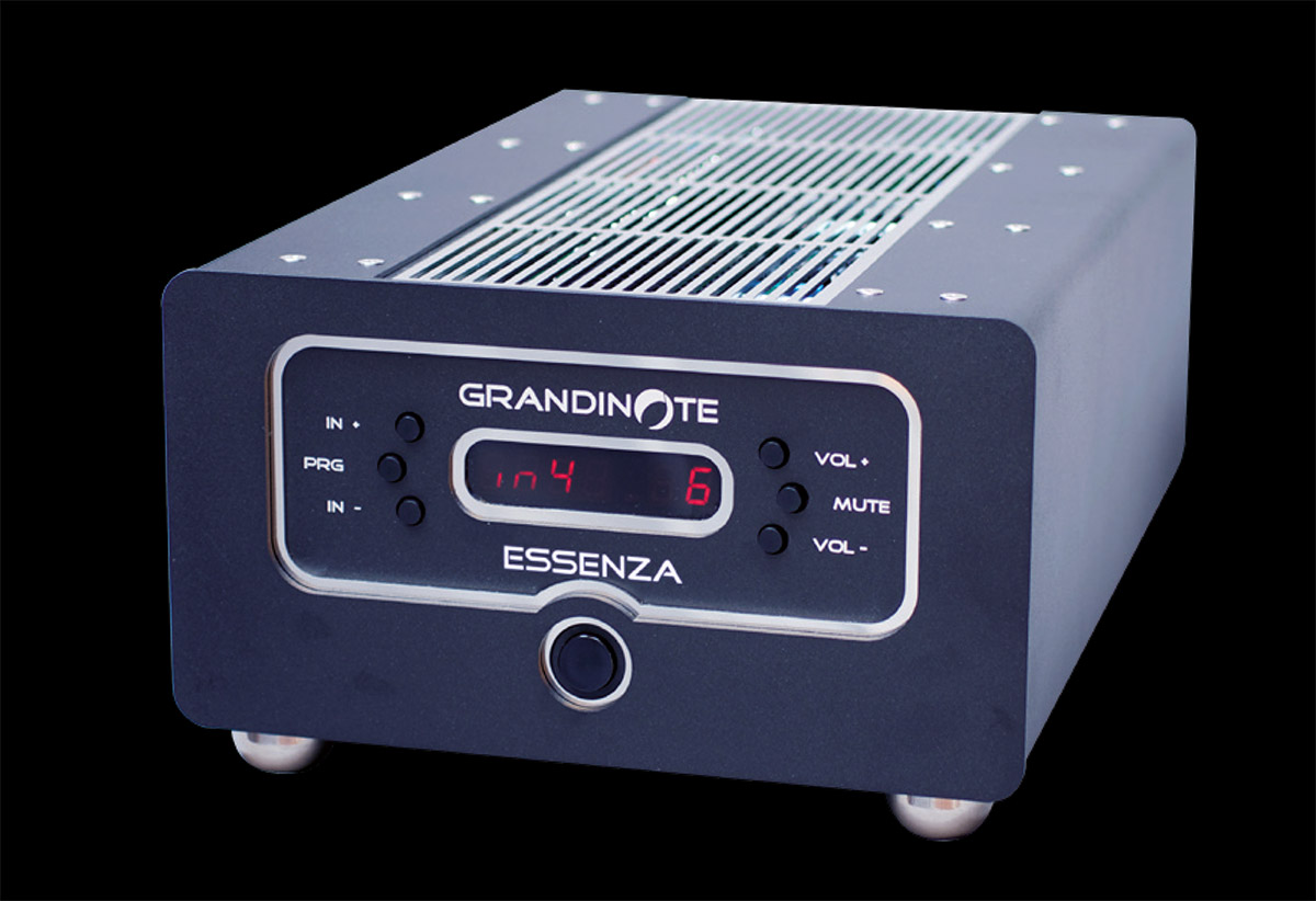 Коммутационный арсенал включает два балансных входа на разъемах XLR и два небалансных на RCA. Дизайн усилителя выполнен в фирменной традиции — металлический корпус нестандартной ширины опирается на крупные сферические опоры. Рекомендованная розничная цена усилителя Grandinote Essenza в Италии составляет 19 800 евро.