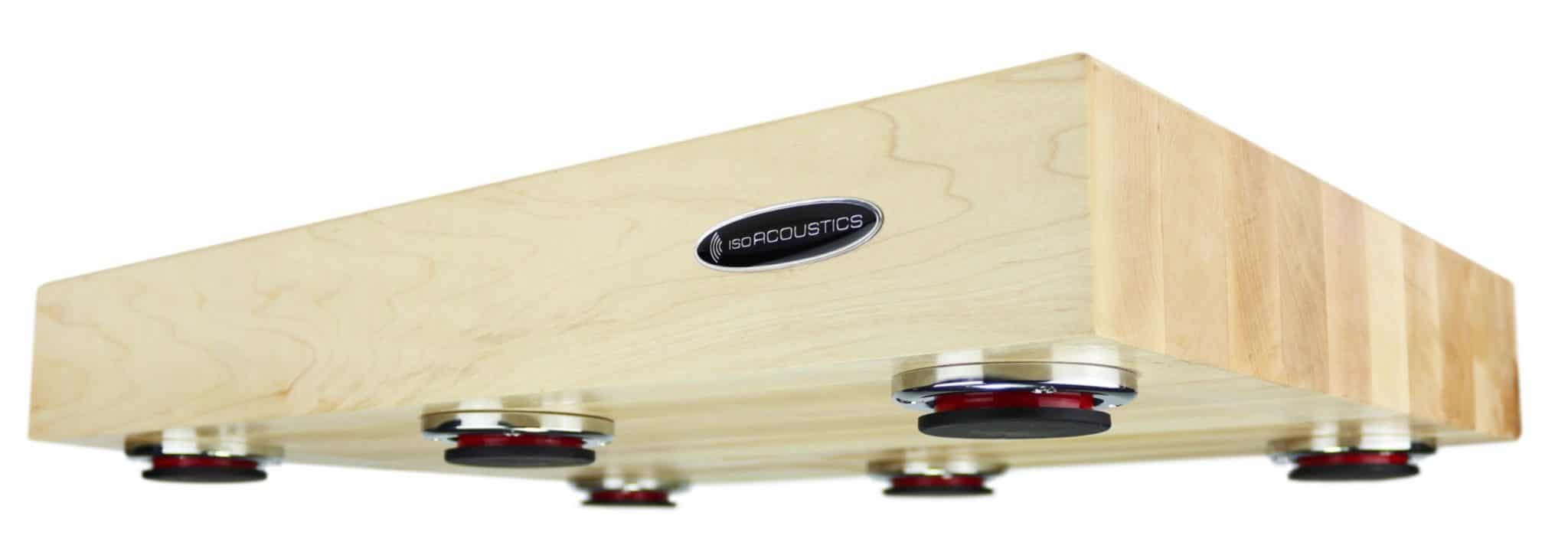 Основу платформы составляет толстая доска из массива клена, на которой закреплены фирменные антивибрационные ножки IsoAcoustics. Доступны модели разных размеров и толщины, в зависимости от которых они могут выдерживать разный вес компонентов. В старших версиях также добавляется дополнительный ряд ножек.