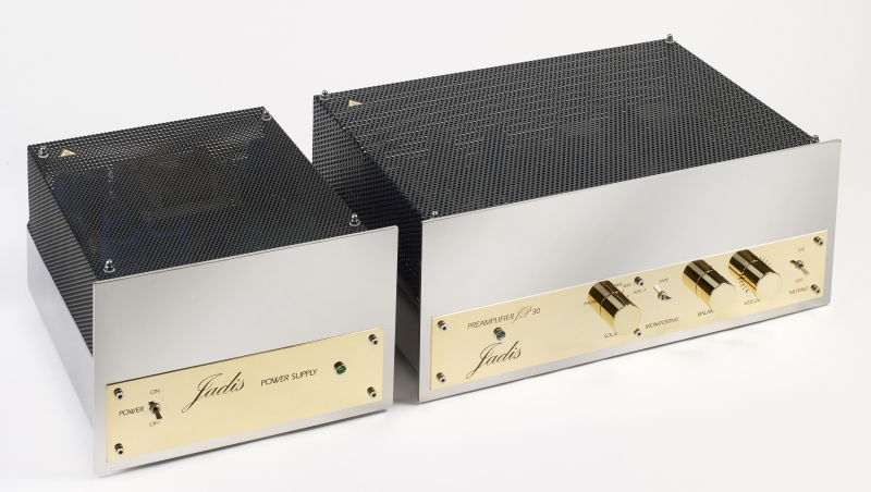Jadis Audio JP30 MC MKIII - новейшем двухблочном предварительном усилителе с фонокорректором. Цена кусается - 11 300 евро, за эти деньги покупатель получает оформленный в отдельном корпусе блок питания, ламповый стабилизатор на EF86 и EL34. Сам пред базируется на шести триодах ECC83. Новое фото аппарата со снятыми кожухами: