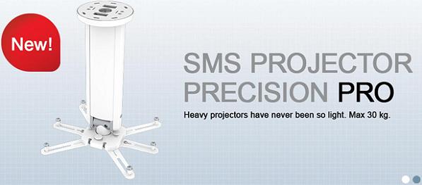 Прочнейший крепеж SMS Projector Precision Pro предназначен для монтажа серьезного профессионального видеопроектора весом до 30 кг. Для максимально точной настройки положения изображения он оснащен уникальным наклонно-поворотным механизмом, который осуществляет регулировку и фиксацию «фонарика» в необходимом положении без использования дополнительных инструментов. Длина штанги здесь может составлять 25, 50 или 100 см. SMS Projector Precision Pro