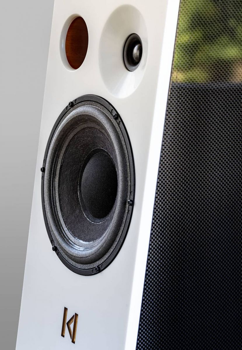 Корпус Kroma Audio Mimi полностью выполнен из композитного материала Krion, а боковые панели отделаны карбоновыми вставками. Интересная деталь – во всей конструкции нет ни единого металлического винта. Разделительные фильтры выполнены на компонентах Mundorf и NOS из старых запасов, для предотвращения вредного воздействия вибраций кроссвер дополнительно залит эпоксидной смолой. Вес одного монитора составляет 18 килограммов, чувствительность – 92 дБ, номинальный импеданс – 8 Ом.