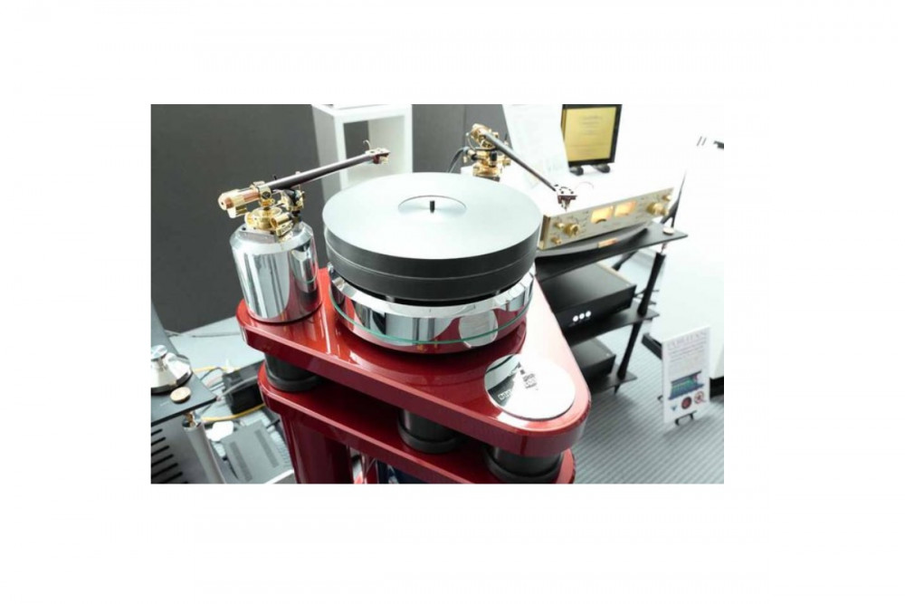 Основной диск состоит из двух «этажей», которые отделены друг от друга шипами. Нижний весом 11,3 кг выполнен из металла, верхний — из полиамида нилатрона. Проигрыватель отделен от стенда подвесом Air Pods.