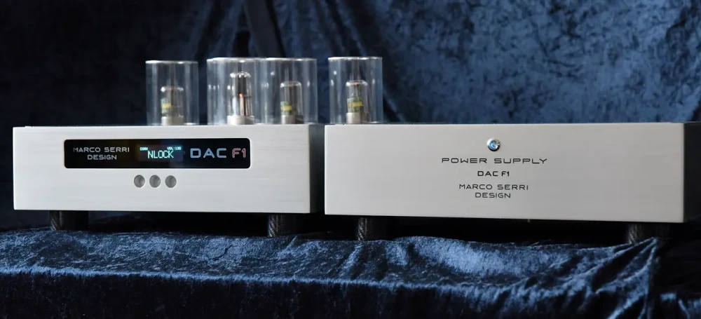 Marco Serri DAC использует внешний ламповый блок питания - его схемотехника построена на базе "трубок" 6NS7. Двойная система фильтрации электричества гарантирует исключительно стабильные характеристики.
