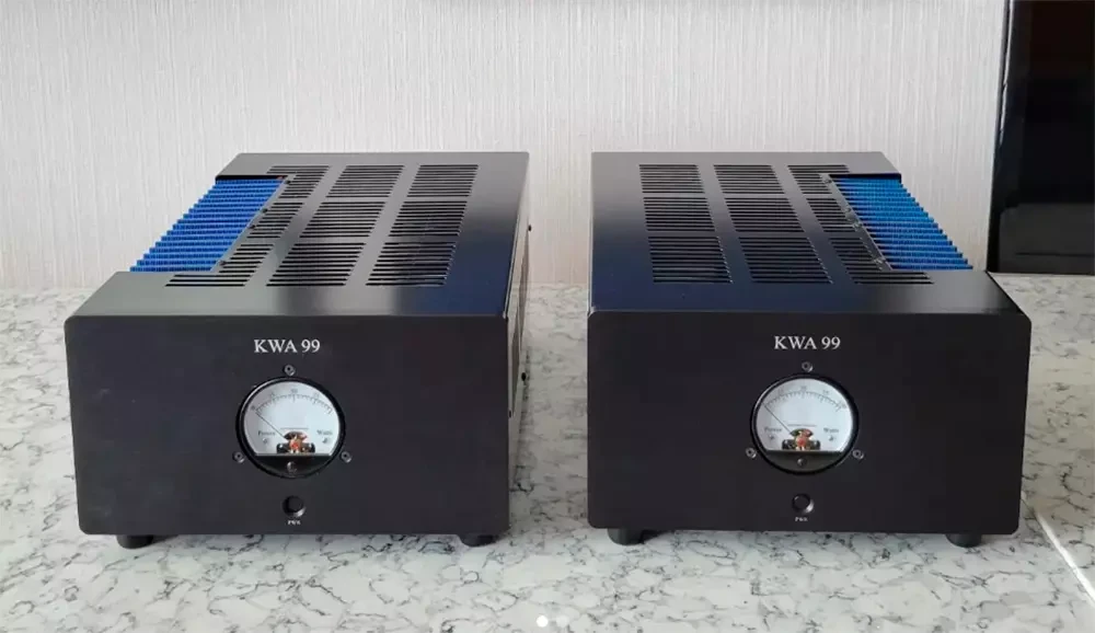 В моноблочных усилителях мощности KWA 99 используются полевые МОП-транзисторы Exicon Lateral MOSFET, обеспечивающие выразительное звучание и необходимый уровень надежности. Одна из боковых стенок корпуса представляет собой открытый радиатор охлаждения выходного каскада, работающего в классе A/B и развивающего до 200 Ватт при работе на нагрузку номинальным сопротивлением 4 Ом. Усилитель выполнен в балансной концепции и отличается высокой точкой смещения. То есть, работает в чистом классе A до достижения достаточно высокой выходной мощности. Триггерные входы 12 В позволяют автоматизировать управление усилителем, например, при работе в системе с ламповым предварительным усилителем ModWright LS 99, созданным в расчёте на совместное использование с этими моноблоками.