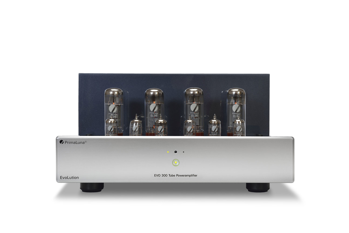 На смену заслужившим превосходную репутацию усилителям серий Prologue и Dialogue голландская компания PrimaLuna выпустила новую серию – EVO. В ней на сегодня по четыре модели предусилителей, интегральных усилителей и усилителей мощности. Про предварительный усилитель PrimaLuna EVO 300 Pre мы рассказывали совсем недавно. PrimaLuna EVO 300 Power – это второй по старшинству из четырех усилителей мощности, выдающий на лампах EL34 в триодном режиме работы 2 х 22 Вт или 2 х 44 Вт – в ультралинейном режиме. Для удобства владельца режим работы можно переключать с пульта, удобно устроившись в кресле. Не нужно вставать и прерывать прослушивание музыки, можно мгновенно сравнить свои впечатления и выбрать тот режим, который вам больше нравится для конкретной песни или альбома.