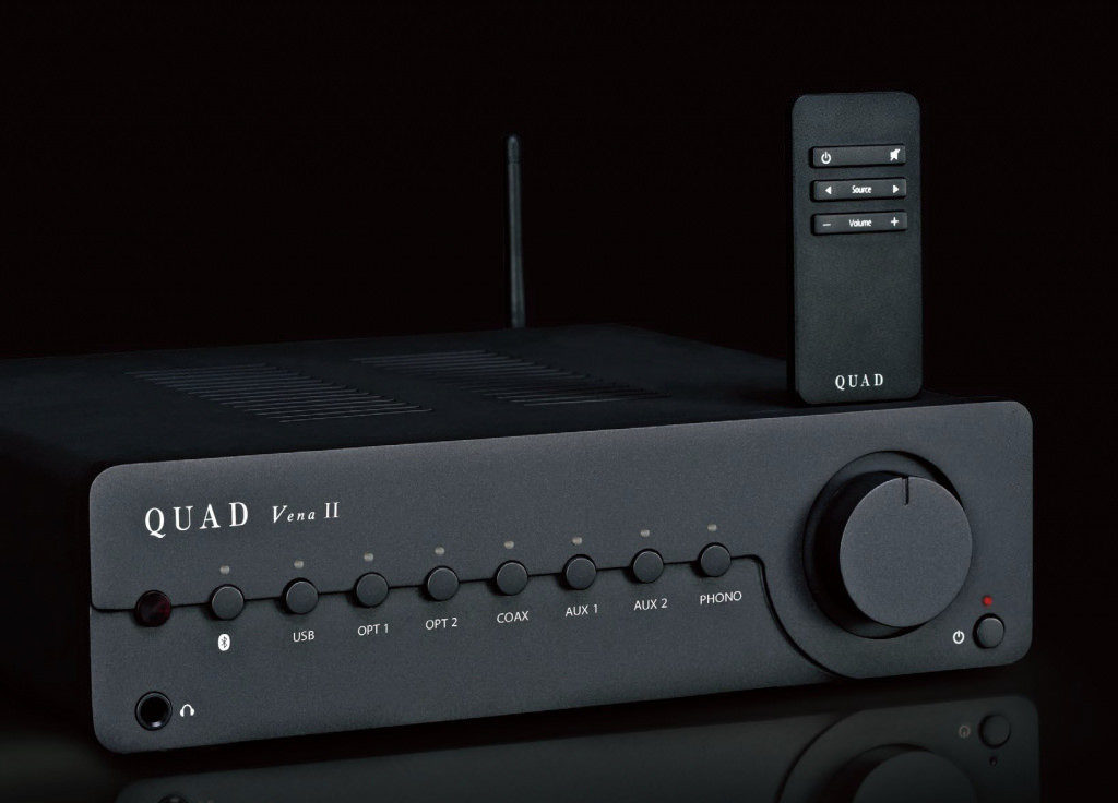 Quad Vena II может работать с сигналами до DSD256 и PCM 24/384. Беспроводное включение возможно по протоколу Bluetooth aptX. Также присутствуют коаксиальный и два оптических цифровых входа, два линейных входа и фоно-вход. Выход для наушников работает от выделенного усилителя. Выходная мощность не изменилась (2 х45 Вт на нагрузку 8 Ом, соотношение "сигнал - шум" 108 дБ), в продаже