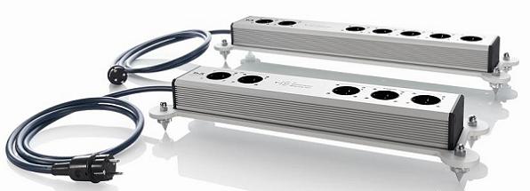 Компания T+A выпустила распределители питания Power Bar 2+3 на 5 розеток и Power Bar 2+5 на 7 розеток, позиционируемые как отличные партнеры для AV-компонентов класса High End. Две розетки в них предназначены для обеспечения энергией усилителей или предусилителей, а остальные три или пять – для включения в сеть источников сигнала. Отличающиеся исключительной прочностью и жесткостью корпуса новинок, которые изготовлены из анодированного алюминия, надежно защищают начинку от внешних электромагнитных и других помех, а также ослабляют влияние внутренних магнитных полей, генерируемых текущими токами. Между предназначенными для AV-источников розетками установлены ферритовые кольца, фильтрующие радиочастотные шумы. Для подключения к сети в устройствах применяется фирменный кабель Power Four длиной в 2 метра с тремя скрученными проводниками из очищенной меди с посеребренной экранирующей оплеткой. Модели могут подавить импульсную токовую нагрузку в 2500 A, которая длится 20 мкс. Установленный в верхней части корпуса аппаратов светодиод сигнализирует красным цветом о срабатывании защиты и синим о несоблюдении фазы. Суммарная мощность подсоединенной к T+A Power Bar