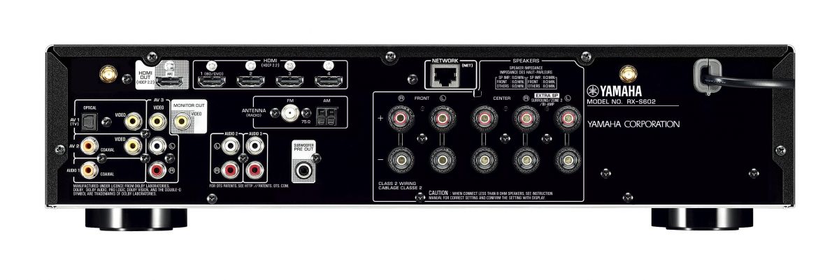 Yamaha RX-S602 Slimline может работать с видео-сигналами 4K, поддерживается Dolby Vision; аудиоталанты включают калибровку комнаты YPAO и процессор Cinema DSP 3D. Встроены стриминговые клиенты Spotify, Pandora, Deezer, Napster, Tidal и SiriusXM. Беспроводное включение возможно через Wi-Fi, Bluetooth и AirPlay. Релиз