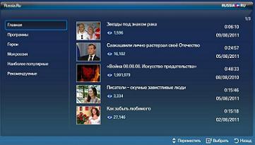 Компания Samsung Electronics представила приложение Russia.ru для фирменной аппаратуры на платформе Smart TV. Появившись в интернет-пространстве в 2007 году, этот проект заявил о себе как о первом профессиональном интернет-телевидении и быстро занял ведущее положение среди сетевых телеканалов. Russia.ru делает передачи для самой разной аудитории и освещает темы, которые игнорирует традиционное телевидение. Нелинейный формат вещания помогает зрителю самому выбирать интересные для себя сюжеты. На Russia.ru освещаются ключевые события политической и культурной жизни, выступают известные политики, ученые, журналисты, аналитики, деятели культуры. С новым приложением для Samsung Smart TV пользователю становится доступен самый свежий контент интернет-телеканала. Виджет позволяет всегда быть в курсе последних событий и вновь вышедших телепередач, а простой интерфейс обеспечивает быстрый поиск интересующих репортажей, программ и героев. Понятная система навигации, удобное управление при помощи пульта ДУ, а также быстрая загрузка делают работу с виджетом Russia.ru