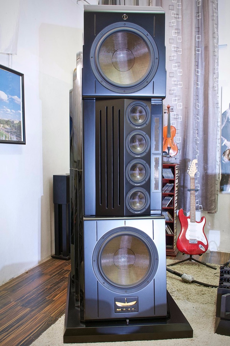 Sigma Acoustics MAAT Orchestra играют 42 см вуферы с карбоновыми диафрагмами, сверху - лента RAAL (до 30 кГц).