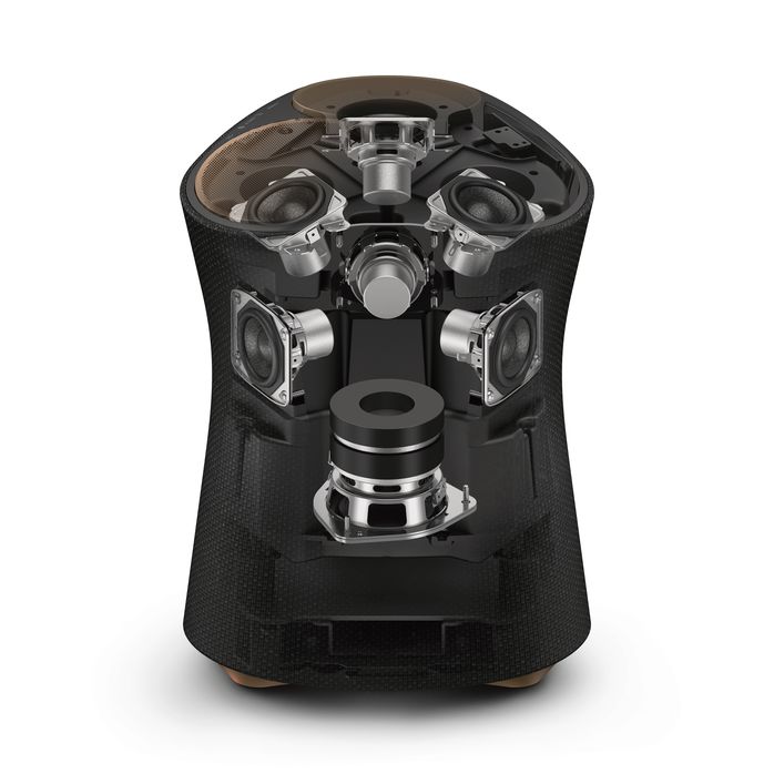 Корпус Sony SRS-RA5000 полностью покрыт акустически прозрачной тканью, а круглые защитные решетки на верхней панели придают колонке сходство с электробритвой. Модель поддерживает подключение по Bluetooth и Wi-Fi и совместима со всеми актуальными голосовыми помощниками. Интригует заявленная поддержка функции 360RACAST, скорее всего, предназначенная для будущего стримингового видеосервиса Sony со звуком 360 Reality Audio.