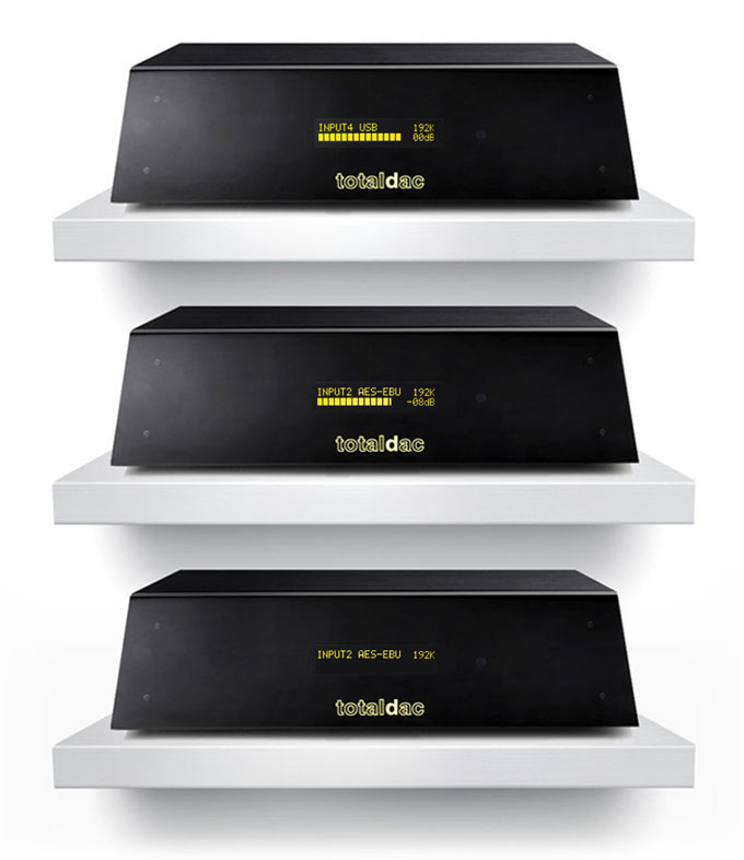 Totaldac d1-twelve-mk2 работает с сигналами до PCM 24/192, DSD DoP. Регулировка громкости встроена и активирована для всех входов, пульт ДУ теперь, также, новый.