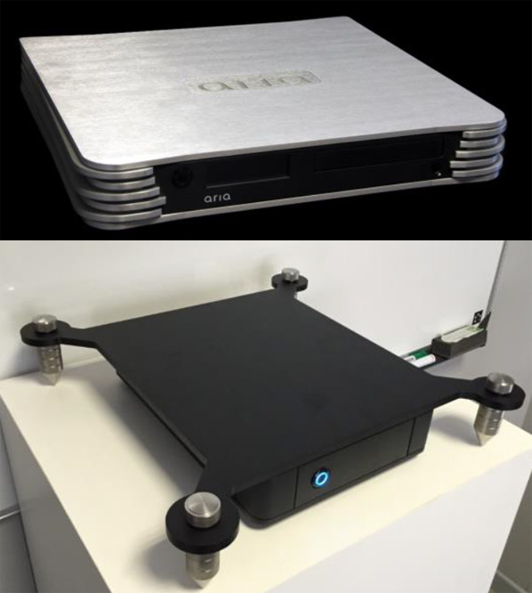 На уровне железа — шасси, изготовленное из цельного алюминиевого блока, пассивное охлаждение, плата Intel с процессором Celeron CPU и 4 Гб RAM, гибридный диск стандарта 4TB SSHD (опционально 2TB SSD). aria2 может комплектоваться отдельным ультра низкошумным блоком питания. В базовой версии нет встроенного ЦАПа, есть USB, коаксиальные и AES/EBU выходы. Опциональный ЦАП имеет балансный и небалансный аналоговые выходы. Выход HDMI может использоваться в мультиканальной конфигурации для коммутации с внешним усилителем мощности и для служебных целей.