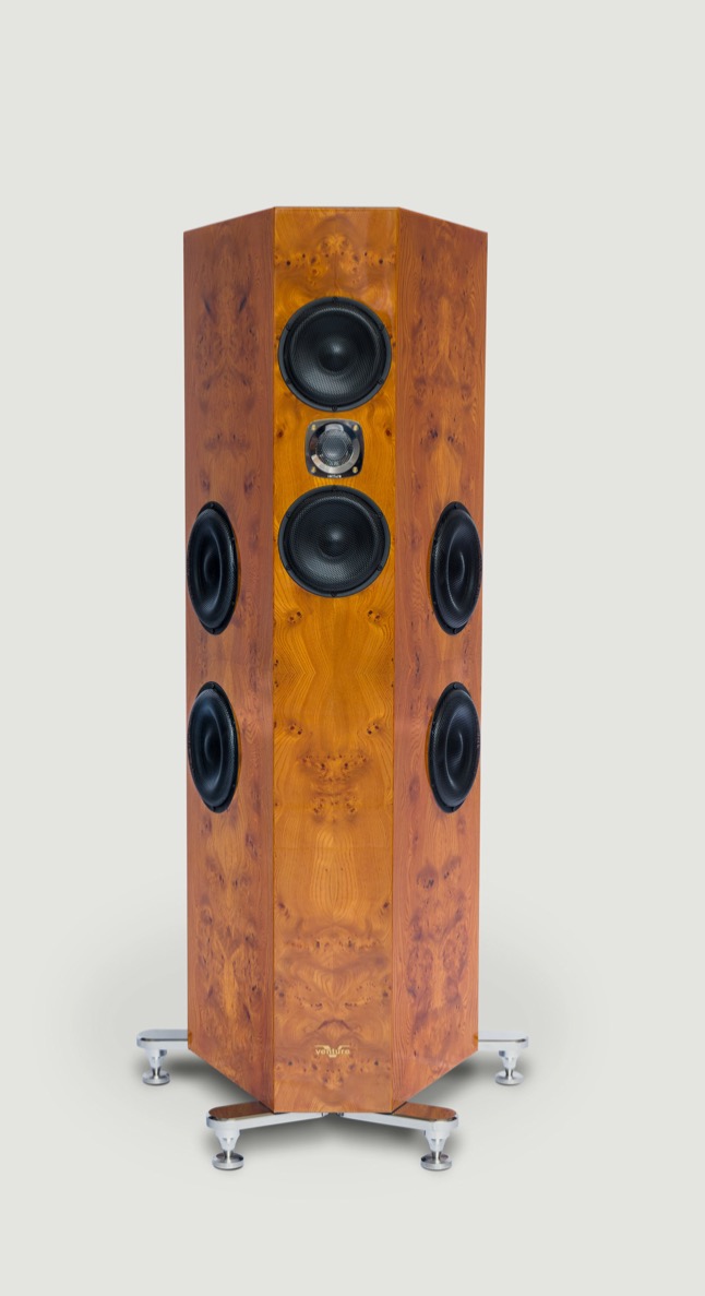 Venture Audio Quantum Signature оформлены по полностью активной трехполосной схеме, "на борту" - 3 усилителя, ЦАП (со входом AES/EBU) и аналоговый XLR-вход. Весит одна