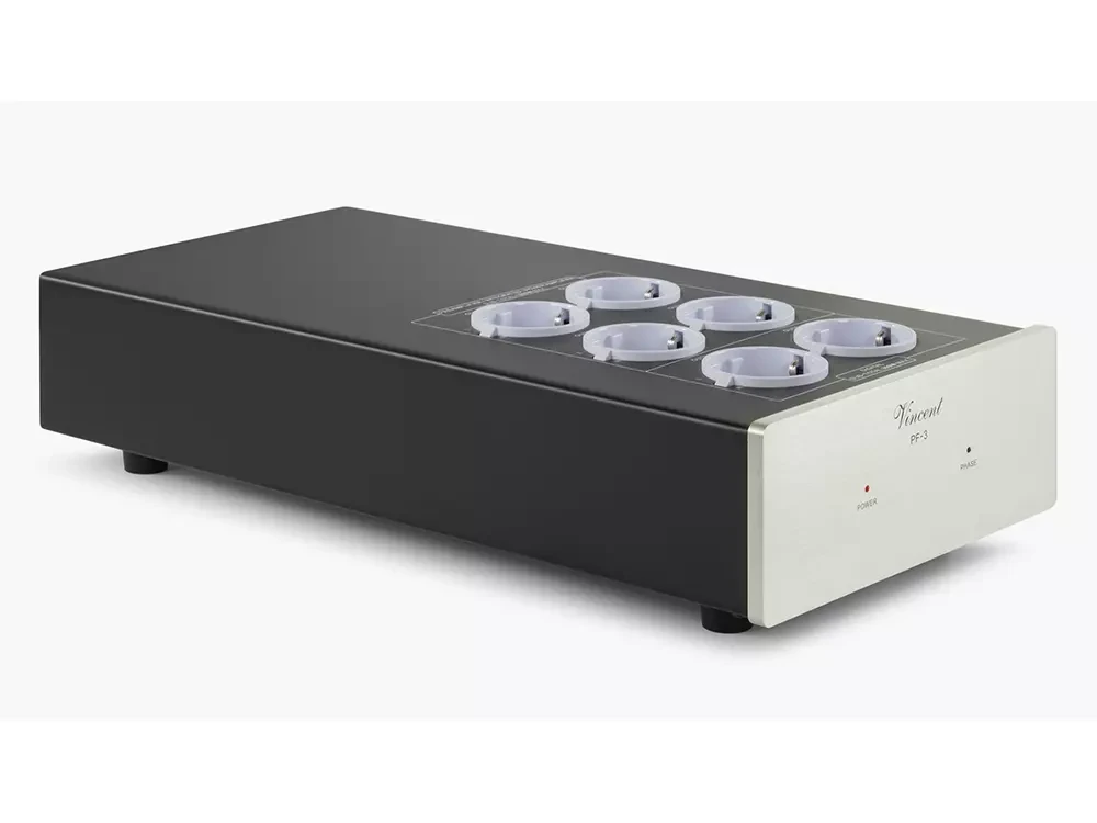 Фильтр электропитания Vincent PF-3 оснащён шестью розетками Schuko. Все розетки имеют EMI- и DC-фильтрацию. Две розетки специально предназначены для цифровых источников. Ещё четыре розетки рассчитаны на устройства с высоким энергопотреблением. Фильтр оснащён автоматической защитой от перегрузки.