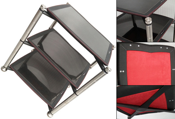 Высокие технологии постоянно эволюционизируют, и с учетом этого компания устанавливает параметры своей аудиомебели. Углеволоконная композиция полок представляет собой новый микроячеистый полимер меньшей удельной массы, но эквивалентной прочности. Использующийся в аэрокосмической промышленности композит позволяет снизить уровень воздействующих на конструкцию вибраций на дополнительные 25%.