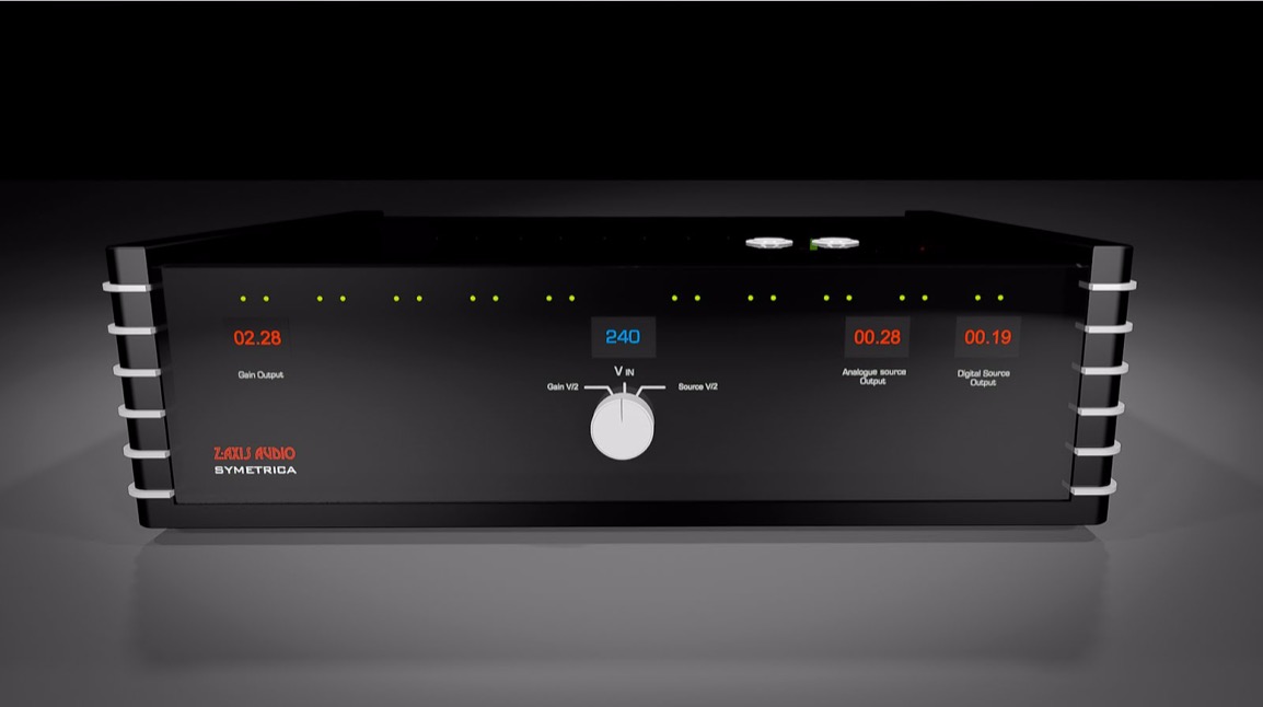 Z:Axis Audio SYMETRICA использует три трансформатора - пара на 300 VA работает на цифровые и аналоговые источники сигнала, мощный 2 kVA - на усилители. Максимальный ток достигает 8,8 А, так что, даже мощный ламповый усилитель может работать через