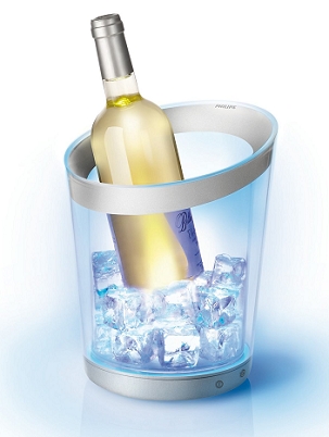 Компания Philips выпустила серию светодиодных аксессуаров Lumiware с подсветкой из белых и цветных светодиодов. Эффектное мерцающее сияние преобразует предметы, подчеркивая детали и расставляя магические акценты в интерьере. Ведерко для охлаждения бутылок с белыми и цветными светодиодами и подстаканники с разноцветной подсветкой сделают любую вечеринку оригинальной и запоминающейся. Сенсорная панель настройки света находится в нижней части ведерка, а для того чтобы зажечь или изменить цвет подстаканников, необходимо покачать их из стороны в сторону. Ведерко и подстаканники заряжаются индукционно с помощью платформы. Зарядка длится около 10 часов, после чего аксессуары Philips Lumiware