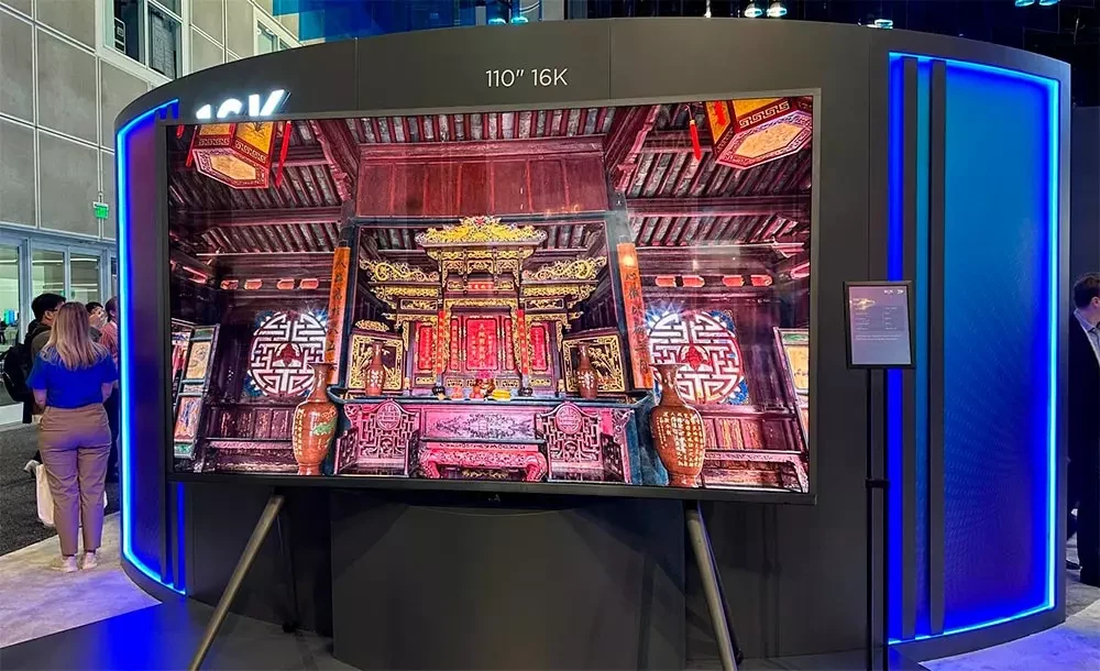 Прогресс в области видеопанелей всё больше угрожает кинотеатральным проекторам как основному элементу домашних кинозалов. На выставке SID Display Week 2023, которая прошла в последних числах мая в Лос-Анджелесе, известный производитель видеопанелей китайская компания BOE представила первый в мире 110-дюймовый телевизор с разрешением 16K (15 360 x 8 640 пикселей).