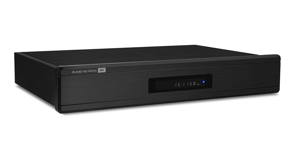 Dune Max 4K имеет два отсека для HDD 3.5", два HDMI-выхода и мощный линейный блок питания. Как заявляет компания, "новое поколение медиаплееров поддерживает Ultra HD 4K видео сверхвысокой четкости с частотой кадров до 60 к/с, технологию HDR, 10-битное кодирование цвета, цветовое кодирование по стандарту BT.2020, вывод видеосигнала через интерфейс HDMI 2.0a." Используется чипсет Realtek RTD1295 с ЦПУ ARM 4-core Cortex A53 1,5 ГГц (13 800 DMIPS) и графическим сопроцессором Mali-T820.