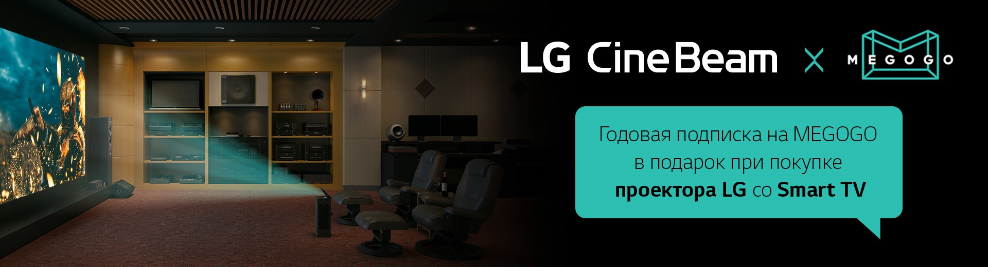 Компания LG совместно с крупнейшим в Восточной Европе видеосервисом MEGOGO запускают в России акцию: каждому покупателю любого Smart-проектора LG – бесплатный годовой доступ к ТВ и Кино по подписке «Максимальная» от видеосервиса MEGOGO!