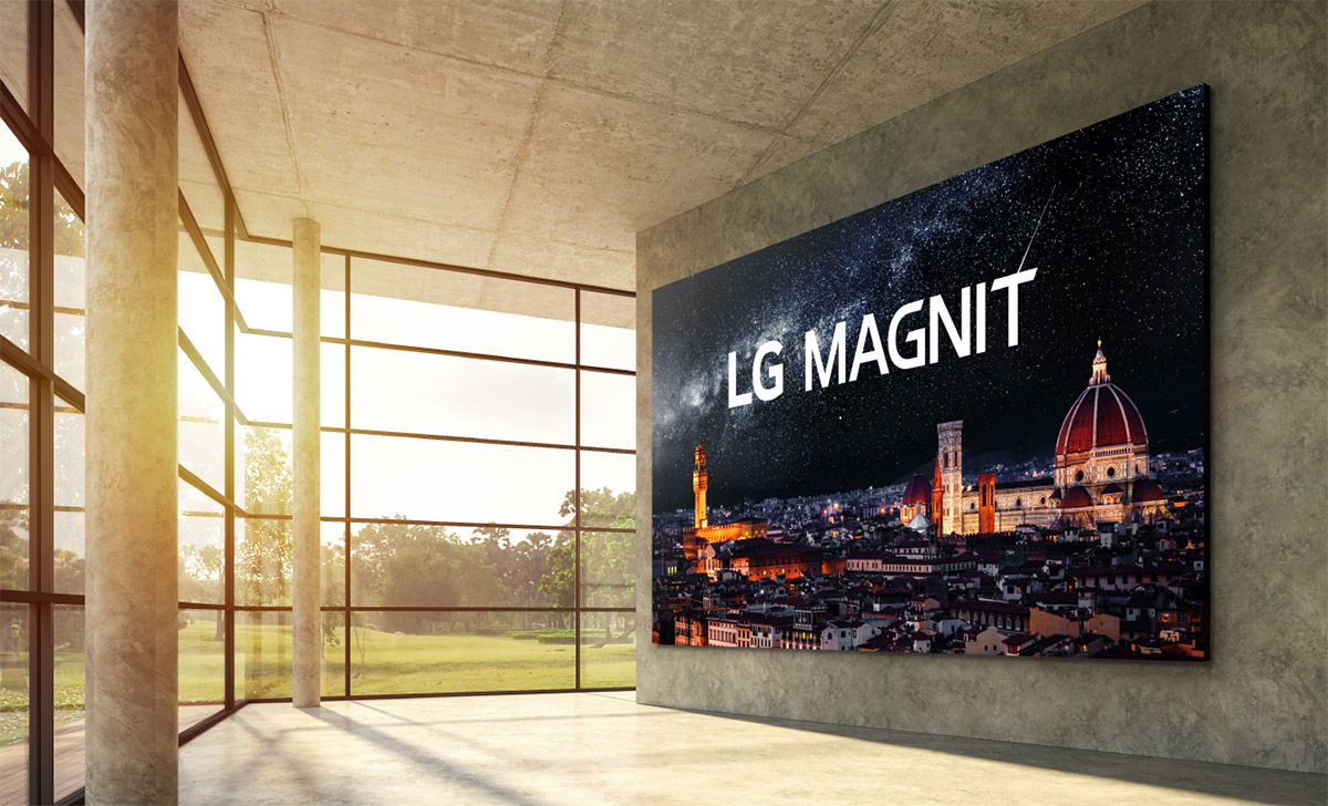 Вместе с представлением коммерческой версии дисплеев microLED для digital signage компания LG Electronics представила домашнюю версию гиганта под названием LG MAGNIT. Это будет экран с диагональю 163 дюйма, составленных из 36 блоков, аналогичных LSAB009. Блоки соединяются между собой системой выступов и пазов и обмениваются информацией по фирменному беспроводному протоколу.