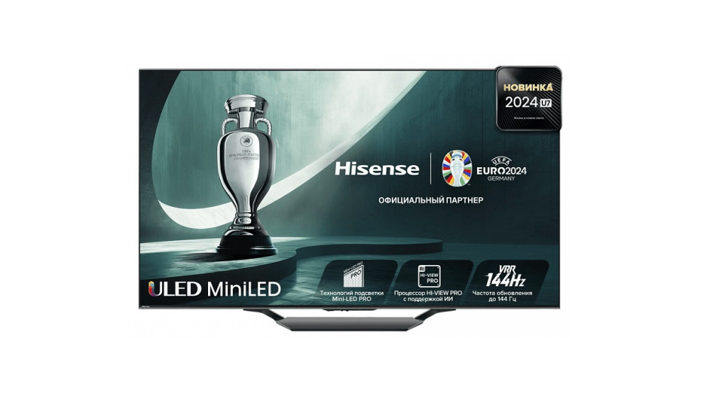 Лучший телевизор Mini LED — Ηisense 65U7NQ (на главном изображении). Диагональ 64,5 дюйма, разрешение 3840 x 2160 пикселей, максимальная яркость 500 нит, коэффициент контрастности 5000:1, частота обновления до 144 Гц, процессор MediaTek MT9618.