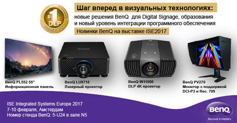 Компания BenQ в очередной раз примет участие в ежегодной выставке ISE в Амстердаме (7-10 февраля), в которой традиционно участвуют лидеры IT и pro-AV рынков. В этом году BenQ вновь представит инновационные продукты: цифровые информационные панели и программное обеспечение, а также проекционные решения для профессиональных, коммерческих и образовательных учреждений. Ознакомиться с новинками можно на стенде компании в зале №5-U24.