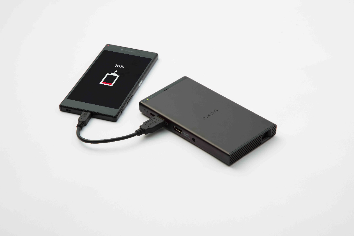 Портативный мобильный проектор Sony MP-CD1 умещается на ладони, но при этом может проецировать изображение размером до 120 дюймов на экран, находящийся на расстоянии около 3,5 м. Масса аппарата составляет всего 280 г, а размеры сопоставимы с современными смартфонами. Он позволяет мгновенно превратить любую поверхность в широкий экран и работает практически бесшумно. Проектор превосходно подходит для проведения деловых презентаций, демонстраций изображений и видео на выездных встречах или просмотра кино вместе с семьей. В Sony MP-CD1 используется технология DLP® IntelliBright™, предусматривающая применение современных алгоритмов обработки изображения для повышения яркости без увеличения энергопотребления.