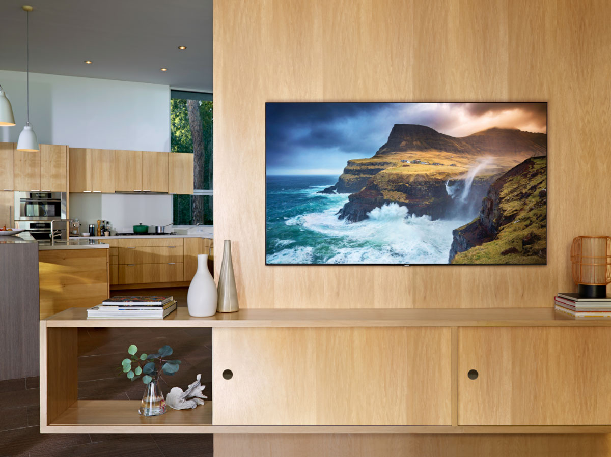 Благодаря обновленному интерьерному режиму Ambient телевизоры Samsung QLED 2019 в выключенном состоянии теперь способны воспроизводить не только время, погоду, семейные фотографии или стильные заставки, но и работы современных художников и дизайнеров. Также появилась возможность применять к изображениям новые цветовые фильтры и автоматически регулировать тон фона и его яркость. Это придает пространству индивидуальности и позволяет расставить акценты в интерьере в зависимости от настроения или ситуации. «Интерьерные» функции новинок дополняются одним, почти невидимым пятиметровым проводом для подключения питания и всех внешних устройств, и креплением без зазора «No gap wall mount» – телевизор, размещенный на стене, будто парит в воздухе и идеально вписывается в дизайн помещения.